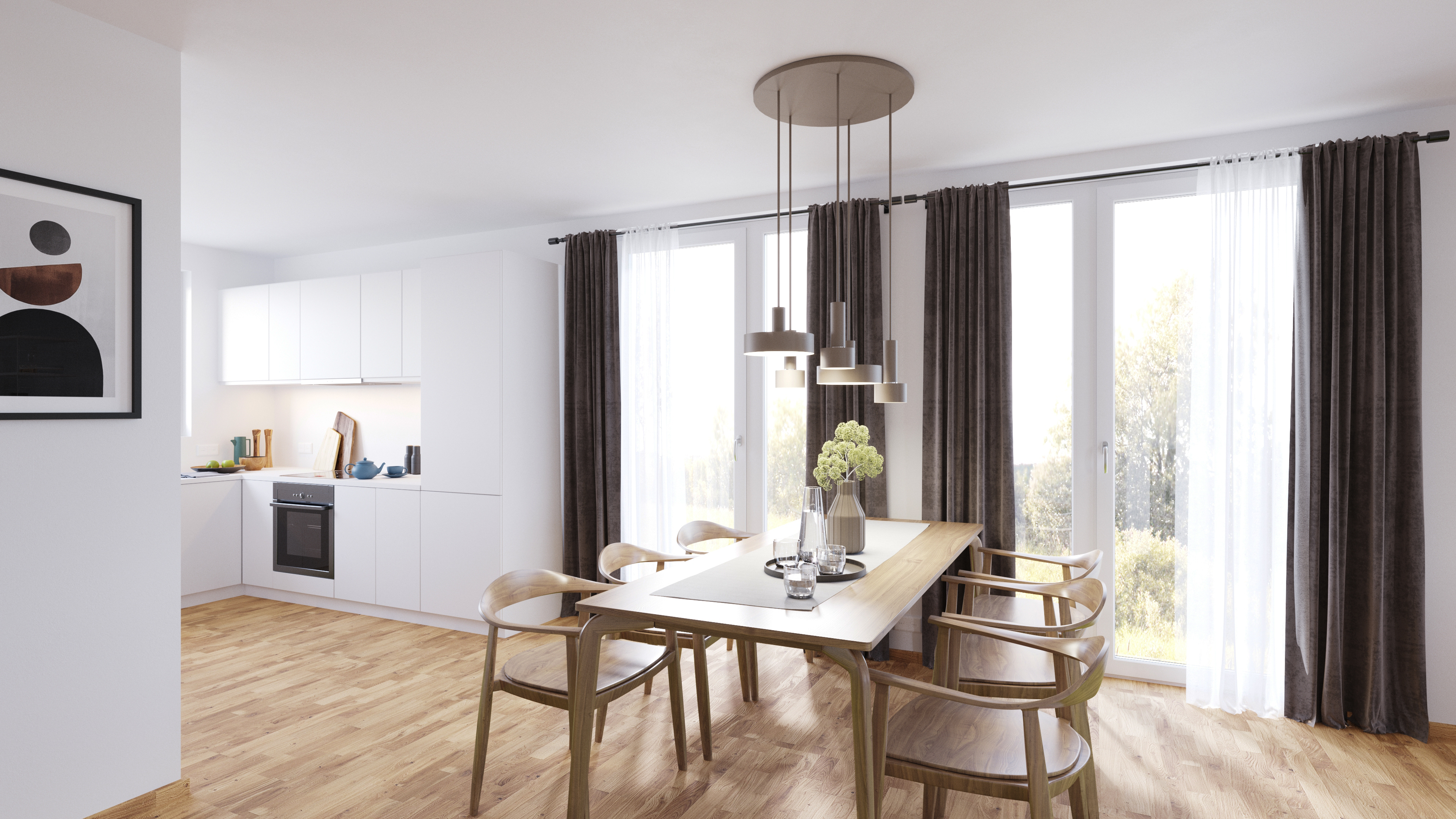 Lichtachsen, die den Blick freigeben. Großzügige Räume, die der freien Entfaltung ihrer Bewohner den Boden bereiten. Und Materialien namhafter Hersteller, die natürlich und dauerhaft Freude machen. Komfort und Design ergänzen sich in den Reihenhäusern im Wohnquartier Brandbach zu einem Qualitätskonzept, in dem es sich nachhaltig gut wohnen und leben lässt.